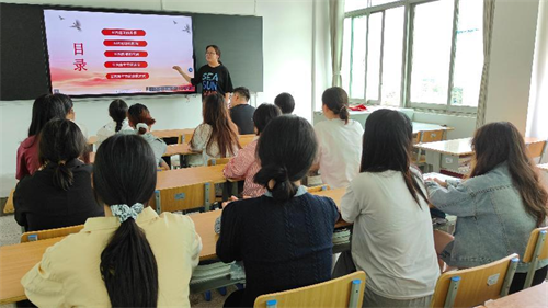 活动伊始,23040103班温天娜同学以“五四运动的历史回响与时代传承”为题,围绕五四运动的背景、影响、精神内涵、五四青年节的意义及当代纪念方式五个方面展开讲解。她结合图文史料,生动还原了百年前青年学子为国呐喊的壮烈场景,并强调:“铭记历史是传承精神的前提,今天的红色教育活动本身就是对五四精神最直接的践行。”