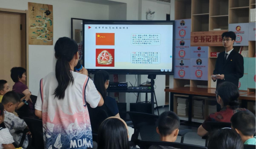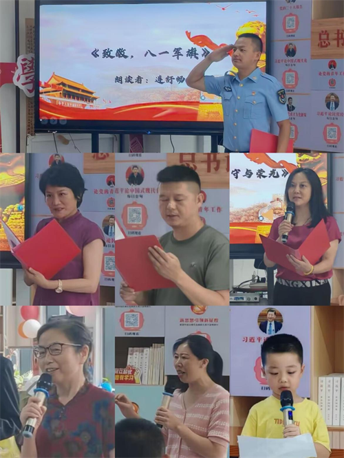 为纪念中国人民解放军建军98周年,传承红色基因,弘扬军人精神,8月1日,湖北职业技术学院财经与旅游学院“罗盘导航”辅导员工作室、“锋”华正茂志愿服务队联合孝感市孝南区广场街道晒书台社区、孝南区朗诵艺术家协会、孝南区青年志愿者协会、孝感朗读者,在书山居爱心托管班开展“传承红色基因,致敬铁血军魂”朗诵会主题活动,带领现场人员回顾人民军队光辉历程,汲取奋进力量。
