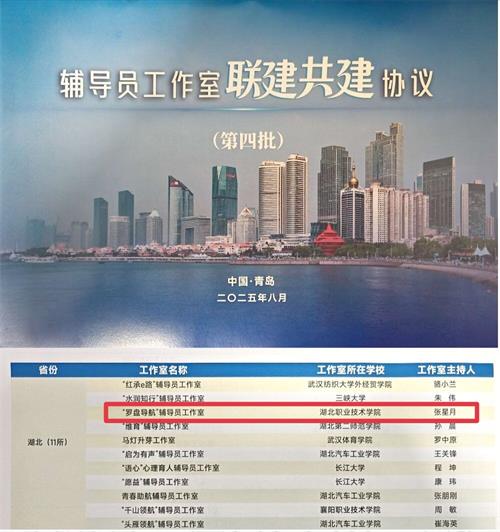 2025年8月,在教育部思想政治工作司指导下,全国高校辅导员工作室联盟发起的第四批高校辅导员工作室“联建共建”名单揭晓,授牌仪式于山东青岛盛大举行。财经与旅游学院“罗盘导航”辅导员工作室成功入选,与全国199个国家级、省级及校级优秀工作室携手,共赴协同育人、资源共享、经验互鉴的新征程,为高校辅导员队伍专业化、职业化、专家化建设添砖加瓦。