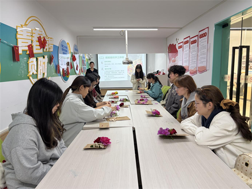 活动以垃圾分类知识问答开场,同学们踊跃抢答,在轻松互动中快速掌握了分类常识。随后,大家利用废旧硬纸板进行插花手工体验,在动手实践中感受“变废为宝”的乐趣,创作出属于自己的环保作品。趣味游戏“垃圾炸弹”环节中,同学们通过传递气球、完成环保任务,在欢声笑语中巩固了低碳知识,将活动气氛推向高潮。